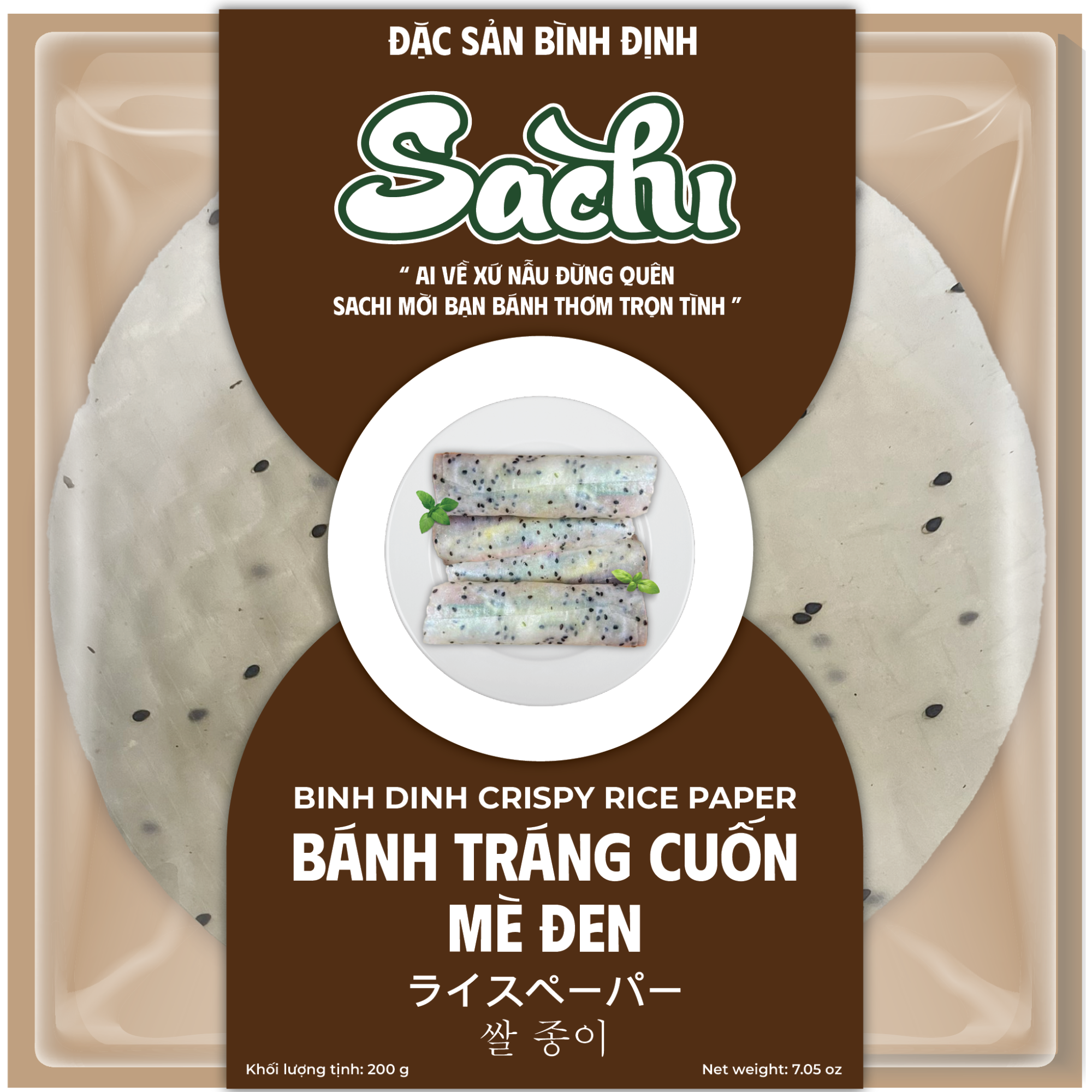 Dip the rice paper in water, gently shake off and place it on a plate. Let it soften for 30 seconds.